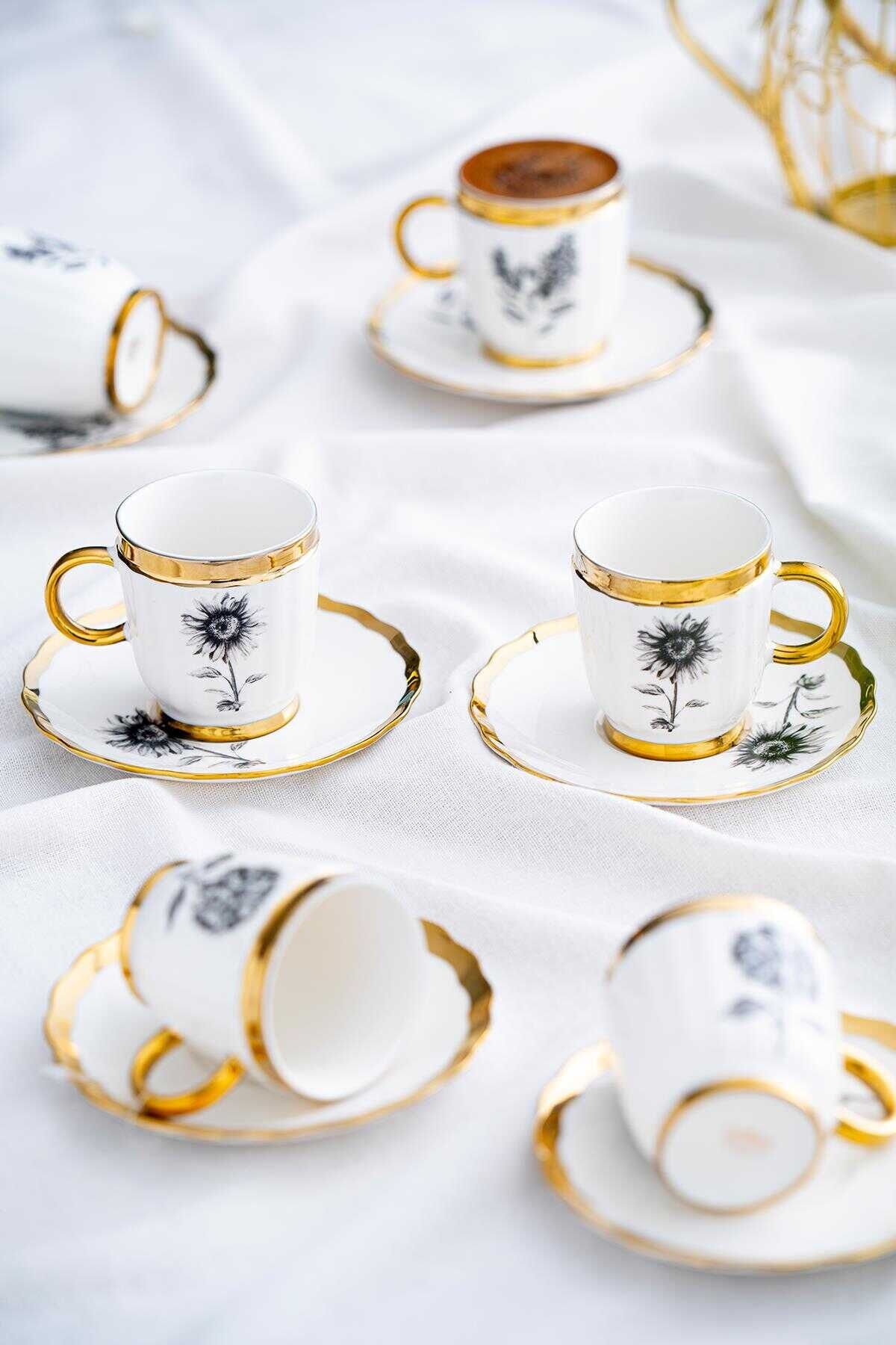 Acar Melody 6 Kişilik Porselen Kahve Fincanı Takımı 90 ml 5142 Gold Model-2