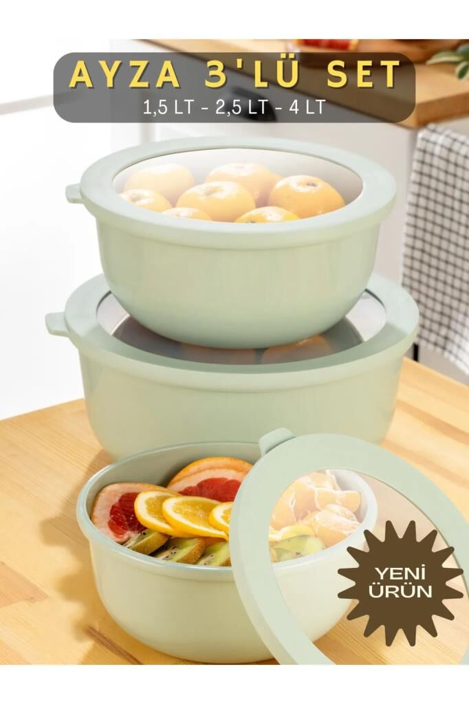 Kapris Ayza 3 Lü Yuvarlak Saklama Kabı Seti Yeşil 593